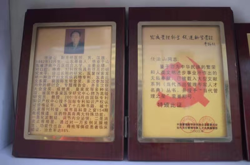 任发山,男,汉族,1960年12月出生,山东莘县人,大专学历,莘县中西医研究中心主要负责人!1998年12月发明国家专利,国家知识产权局颁发了专利证书,名称为《一种治疗妇科疾病的药物》。该专利经世界发明家国际协会评审团评定获国际发明金奖,授予国际专利知识产权认定资格证书。