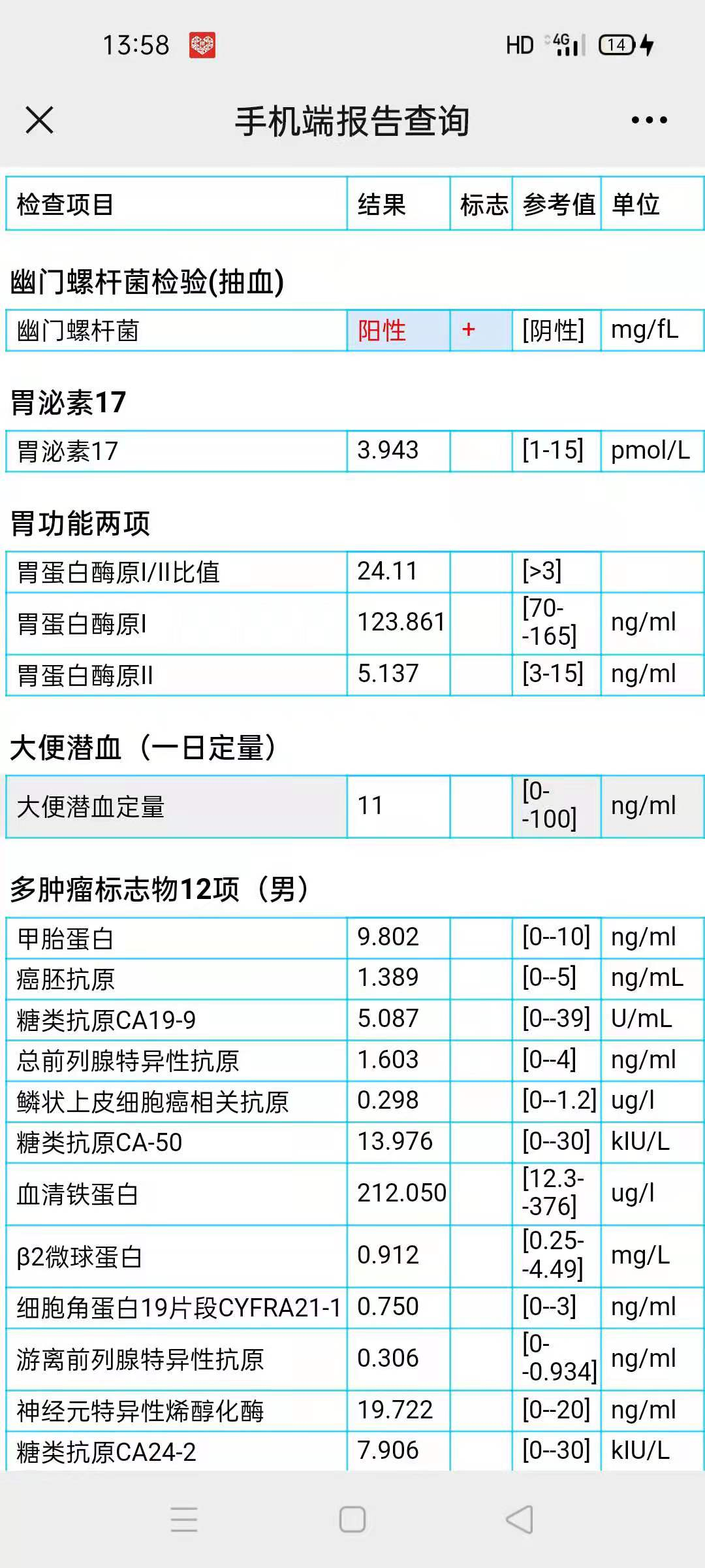 在2019年上海的十一屇民族中医药发展论坛会上,前卫生部长高强先生讲,古今中外至今还没有一篇专门治胃病的专著,想门在坐的有谁能写?回来后我用了十天的时间写了《胃病的治疗方案》下图是我一个朋友的胃病治疗的前后结果资料:(因为乡镇干部每年都 到省。
